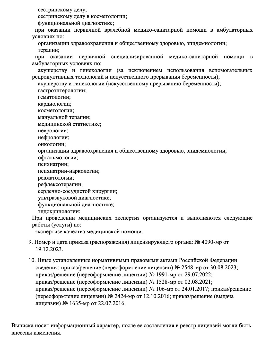 акушерству и гинекологии (искусственному прерыванию беременности); гастроэнтерологии;